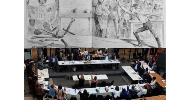 Ahora bien, hay que decir que cualquier parecido con la actualidad no es mera coincidencia. En efecto, algo similar sucedió a finales de pasado abril, cuando el día 28 las y los senadores de Morena y partidos apéndices fueron llamados a Palacio Nacional, a donde acudieron prestos y diligentes a recibir órdenes del presidente del poder ejecutivo y de inmediato, violentado el debido proceso, se trasladaron a la antigua sede del senado para sesionar, en razón de que los otros partidos tenían tomado el recinto legislativo. Ahí, aprobaron a toda prisa, sin siquiera leerlas, 20 reformas que incluían desaparición de algunas instituciones como el INSABI y la Financiera Rural, y se dio luz verde a la nueva ley de ciencia, entre otras iniciativas. Atestiguamos una especie de nuevo Boliche de la Unión pero aquí el logro de la chuza le corresponde todo a López Obrador.