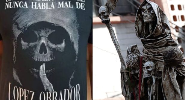 Hace unos días vimos en la red social X la imagen de un alto funcionario del gobierno de AMLO responsable en gran parte de la comunicación social del gobierno promoviendo una playera negra con una imagen de la muerte estampada; se puede ver a una calavera con un índice femenino hacer la señal de silencio sobre los dientes descarnados de un cráneo que reza ."Un verdadero hombre nunca habla mal de LOPEZ OBRADOR”.