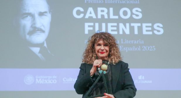 El premio fue entregado por el rector de la UNAM, Leonardo Lomelí Vanegas, y Claudia Curiel de Icaza, secretaria de Cultura federal, ante la presencia solidaria de Silvia Lemus, viuda de Carlos Fuentes, y la poeta Natalia Toledo Paz, integrante del jurado.