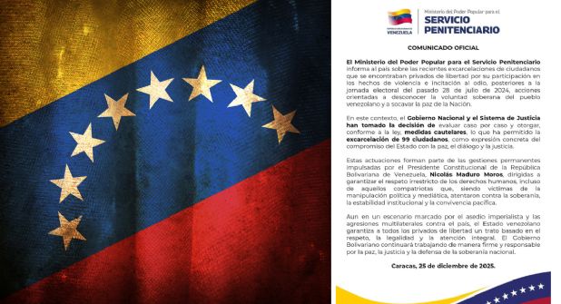 El Nacional ha publicado una lista con los nombres de 33 personas, entre ellos, 3 menores de edad, que han sido liberadas. Un mensaje de Gonzalo Himiob, directivo del Foro Penal, emitido desde la red X anoche, cuenta que esa organización ha confirmado la excarcelación de 45 personas. Alguna otra fuente mencionaba a un total de 71 personas. Lo previsible es que todavía transcurran algunas horas y hasta días para disponer de una actualización fundamentada de lo que está ocurriendo.