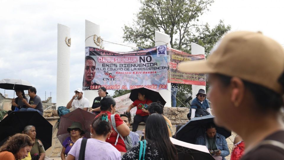 En Oaxaca hubo manifestaciones en contra de la Reforma a la ley del ISSSTE que confronta a la Coordinadora Nacional de los Trabajadores de la Educación (CNTE) con el gobierno federal y estatal. Durante la visita, maestros y trabajadores de la Sección XXII intentaron manifestarse cerca de la mandataria, pero fueron “controlados” por grupos que los confrontó para alejarlos del lugar.