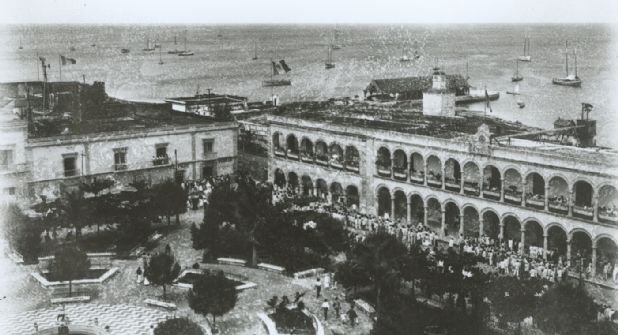 Una fotografía, cuyo origen se desconoce, muestra el derredor de la plaza central de la ciudad de Campeche. Se trata de una plaza pequeña, abierta hacia el cielo, con jardineras arboladas; cercana al mar, aunque separada del mismo por una muralla y edificios. En las calles que circundan su perímetro se realiza un desfile de orden cívico. Era el año de 1910 y la plaza conservaba la misma apariencia que había tenido durante varias décadas (imagen 1).
