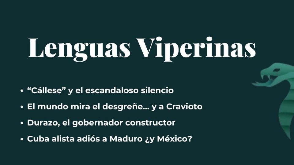 La prestigiosa agencia de noticias internacionales Reuters reportó que el gobierno cubano de Miguel Díaz-Canel se acercó a Washington para conversar sobre los escenarios que supondrá la caída de la dictadura de Nicolás Maduro en Venezuela, pero también para decirse abierto a verificaciones por parte de la Casa Blanca de que la dictadura isleña no favorece el narcotráfico en sus mares. Públicamente La Habana impugna las operaciones estadounidenses en el Caribe, pero todo indica que en privado tendrá un rol en el mundo “post Maduro”. ¿Qué nos dice sobre ello el discreto silencio de Palacio en esta agenda durante las mañaneras? Por si hiciera falta, ayer el presidente electo chileno José Antonio Kast tomó distancia de dicho despliegue naval, pero anunció que apoyará el fin de la dictadura chavista.
