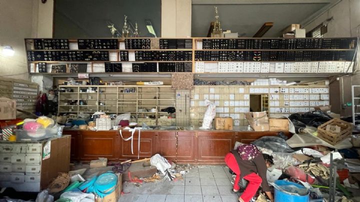 6/4/2024 | En días anteriores se ha sacado mobiliario de lo fue la Peletería La Nacional, pero todavía podían observarse las muestras de cierres y hebillas en los mostradores