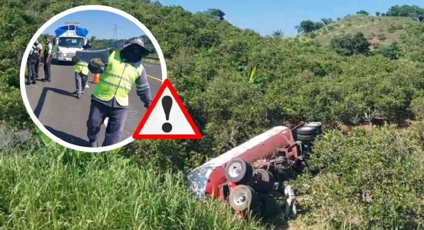 TECOLUTLA, VER.- Una pipa de gas volcó a la altura del kilómetro 59 + 400 de la autopista Cardel – Poza Rica, en las inmediaciones de la localidad Cañada Rica, perteneciente a este municipio costero de Tecolutla, al norte del estado. Fue durante la madrugada de este viernes 8 de septiembre que volcó de forma aparatosa el contenedor de gas Licuado de Petróleo (LP); el “dolly” con el que era arrastrado se desprendió, de manera que avanzó sin control y cayó por una pendiente.
