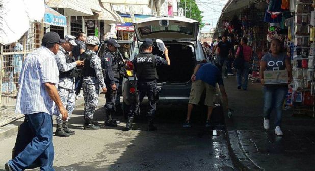 Tras el señalamiento, comerciantes lo alcanzaron y amarraron de pies y manos, quitándole la mayor parte de la ropa, luego avisaron a la policía que llegó minutos después.