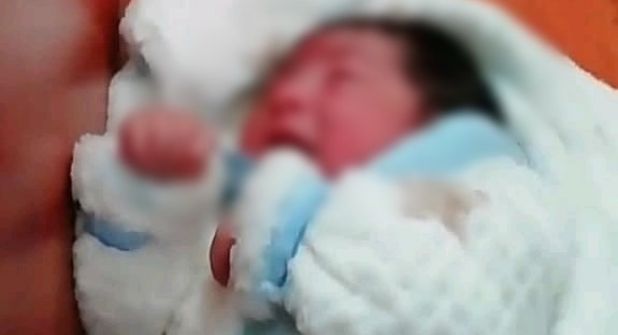 El bebé se fue encontrado envuelto en una cobija de colores, con marcas de tinta en el píe por el reciente registro de su nacimiento probablemente en un hospital público.