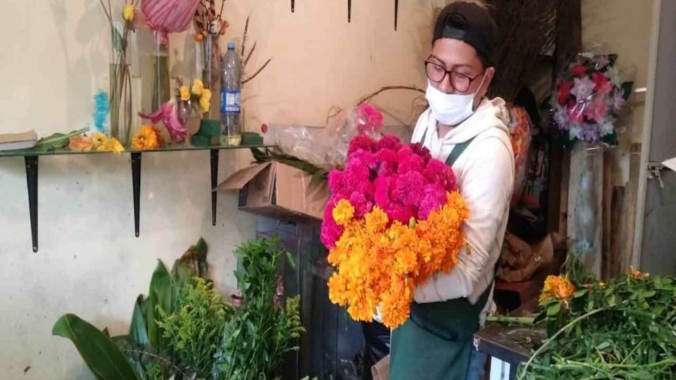 Xalapa, Ver.- Ángel trabaja desde hace 3 años en Eventos y Florería Amor, en Xalapa. “Si no se venden antes del sábado, ya no salen” dice, mientras despacha flor de cempasúchil y “moco de pavo” en vísperas de Día de Muertos.