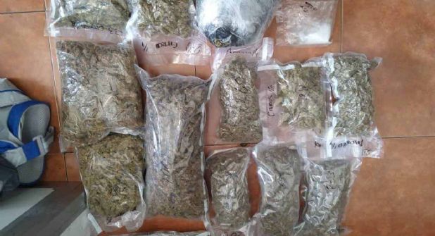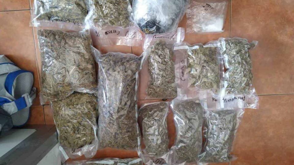 Tras la revisión, hallaron una maleta azul que contenía 5 kilos de marihuana en bolsas, así como 50 gramos de cristal.