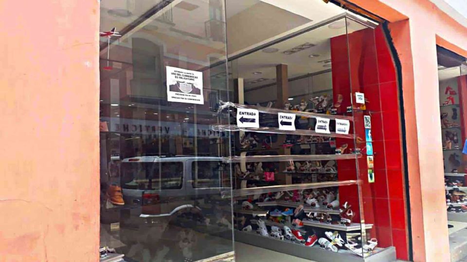 Los cambios que aplicó Vania se notan en los aparadores de los comercios, con barreras de acrílico y cintas de seguridad que dividen los espacios para garantizar la sana distancia.