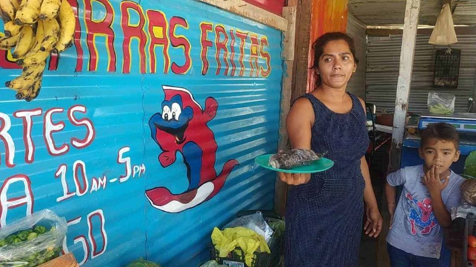 Por suerte y -con la ayuda de Dios-, el negocio de comida pegó y comenzó a ganar más que con las verduras, pues asegura que su toque en la cocina lo avala, para que en menos de un mes se hiciera de clientes quienes disfrutan de sus mojarras fritas y brochetas de camarón.
