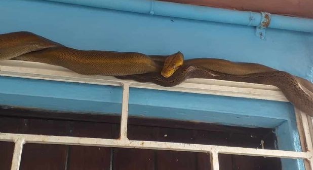 Coatzacoalcos Ver. – Vaya susto el que se llevaron los habitantes de una vivienda particular en el puerto de Coatzacoalcos, al encontrarse una serpiente de casi 5 metros de largo enrollada en una de las puertas. Se trataba de una pitón reticulado Golden “Child Sunfire” de Indonesia, que pertenece a un habitante de esta ciudad, quien aseguró que el reptil se escapó al momento en que realizaba la limpieza de su jaula.