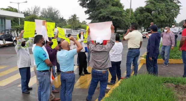 VERACRUZ.- Un grupo de obreros agremiados al Sindicato Nacional Unidad y Progreso (SNUP), de la empresa TenarisTamsa, se manifestó frente a las instalaciones de la fábrica, para denunciar el despido injustificado de más de mil obreros durante la pandemia.