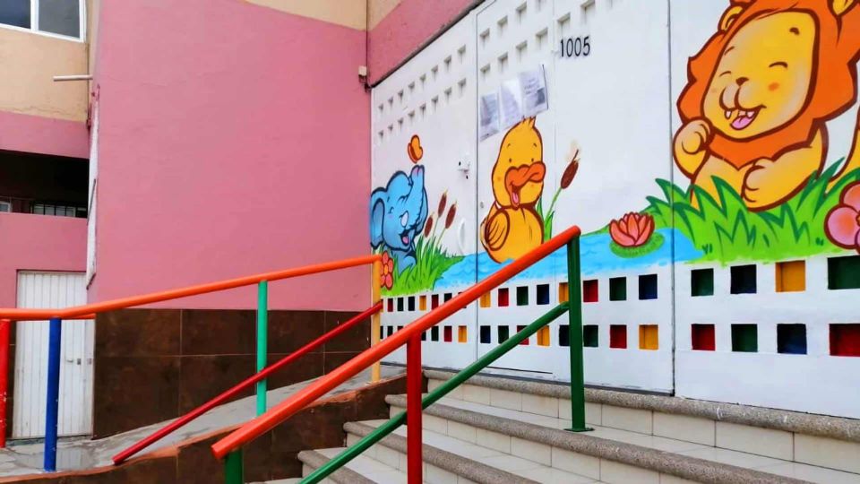 Los adultos deben ingresar obligatoriamente con cubrebocas a la guardería; desinfección de suelas de los zapatos con solución colorada.