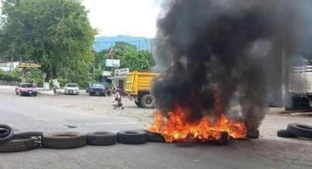 Tezonapa.-Manifestantes bloquearon la entrada y salida del municipio de Tezonapa con llantas quemadas para exigir la salida de Fuerza Civil al denunciar presuntos abusos de autoridad.
