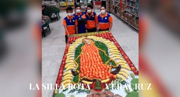 CÓRDOBA, VER.- Trabajadores de un Chedrahui de Córdoba se hicieron virales tras publicar en redes sociales la imagen de una “Virgencita de Guadalupe” que realizaron con frutas y verduras.