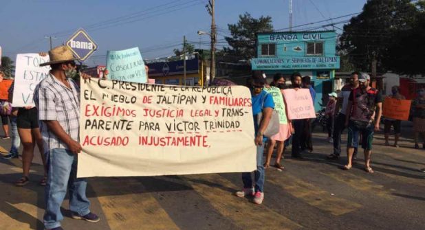 JÁLTIPAN, VER.- Veinticuatro horas después de que Víctor “N” fue vinculado a proceso por su presunta participación en el asesinato de Gladys Merlín Castro y su hija Carla Enríquez Merlín, familiares y amigos realizaron una marcha sobre la carretera transístmica del municipio de Jáltipan, para exigir un juicio justo y que sea liberado.
