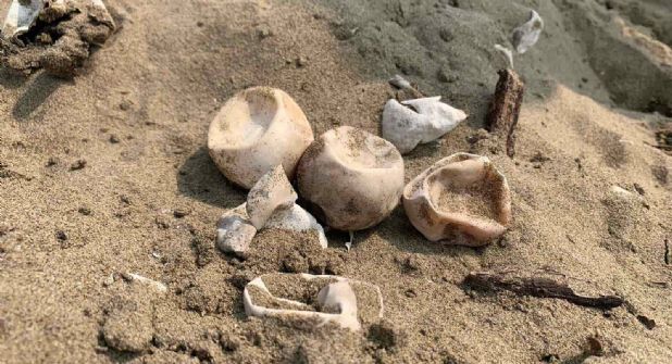 Un grupos de corredores que acuden a la zona costera a ejercitarse encontraron el nido, que previamente habría sido vandalizado, dónde se observan los cascarones y al menos 20 tortugas muertas.