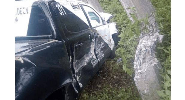 Los Reyes, Ver.- Una camioneta traslado de valores chocó contra dos postes de CFE cuando transitaba sobre la carretera federal Orizaba-Zongolica, a la altura del municipio de Los Reyes.