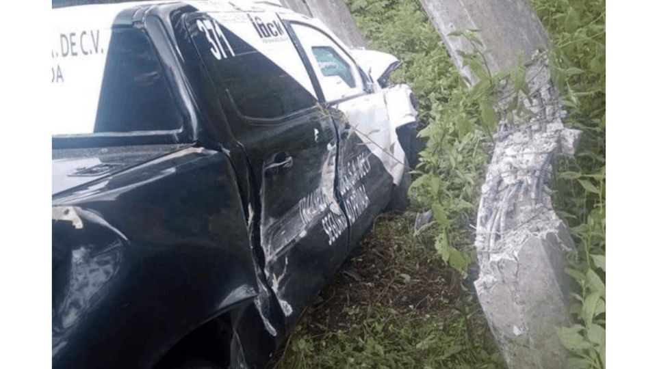 La camioneta con número económico 371, y placas de circulación: LC33167 del Estado de México, terminó impactado contra dos postes de concreto de la CFE, al viajar con exceso de velocidad.