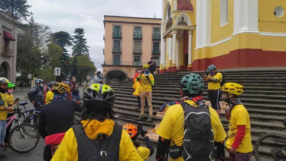 XALAPA, VER.-Agrupaciones de ciclistas xalapeños se manifestaron para exigir a autoridades municipales más seguridad en la ciclovía de la capital, mayor mantenimiento y que no sea retirada.