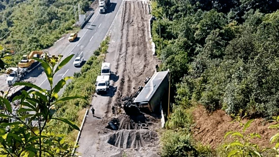 Aquella tarde, un camión de carga, tipo Torton, se volcó a la altura de la comunidad Sumidero, provocando el cierre vehicular y una carambola de tráileres, por supuestamente viajar a exceso de velocidad.