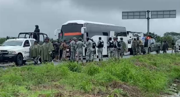 Al momento, el carril de Sayula hacia Acayucan se encuentra cerrado por la Guardia Nacional y el Ejército mexicano en apoyo del INM.