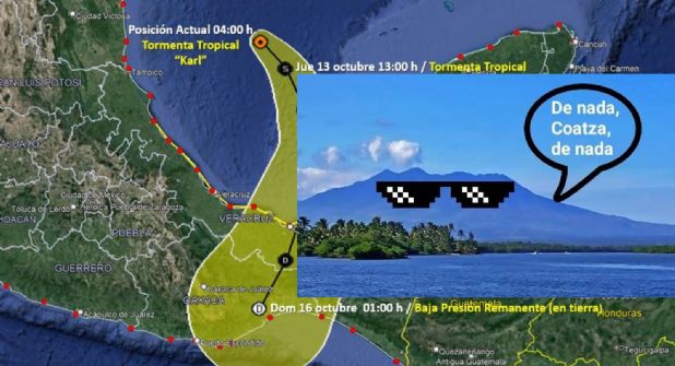 COATZACOALCOS, VER. - El cambio en la trayectoria de la tormenta tropical “Karl”, revivió en redes sociales el mito de que el cerro San Martín protege a los habitantes del sur de Veracruz, principalmente entre los porteños.