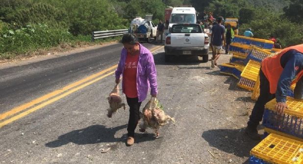 Luego de la volcadura de un tráiler, pobladores de Paso de Ovejas aprovecharon para robar el cargamento de pollos que transportaba el vehículo de carga, tras lo cual se hicieron con más de 18 toneladas de pollos vivos. La rapiña ocurrió durante la tarde del viernes 28 de octubre, sobre la carretera Veracruz-Xalapa.