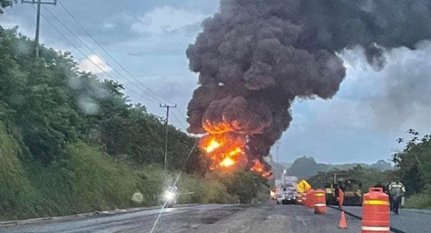 La Guardia Nacional de Carreteras informó sobre el cierre parcial de la circulación por este accidente, aproximadamente en el km 179+500 en carretera La Tinaja-Cosoleacaque.
