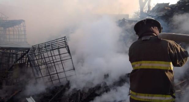 IXTACZOQUITLÁN, VER. - Pérdidas materiales dejó un incendio en un taller de tarimas que se registró la mañana de este 24 de noviembre en la avenida Francisco I Madero con calle Josefa Ortiz de Domínguez de la comunidad de Buena Vista, en el municipio de Ixtaczoquitlán.