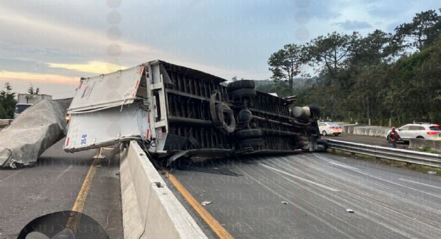 En el accidente participaron un tráiler que circulaba con dirección a Veracruz, que al sufrir una falla mecánica volcó sobre el pavimento, lo que además derivó en un incendio, a la altura del kilómetro 136 de la autopista.