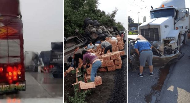 Primero se registró la volcadura de un camión de carga, tipo Torton, que provocó el cierre de la circulación vehicular, posteriormente se registró una carambola entre varios vehículos que derivó del exceso de velocidad al que circulaban las unidades involucradas.