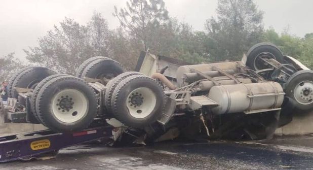 En la carretera Perote-Banderilla, tráiler se queda sin frenos. En ese accidente se reportó una persona lesionada, luego de la volcadura de un tráiler en el libramiento Perote-Banderilla.