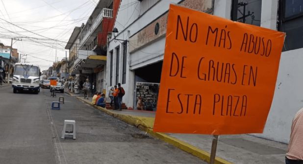 Con cartulinas que colocaron en las inmediaciones de la Plaza, en la calle Clavijero, entre Victoria y Altamirano, se quejaron de que en la actualidad los grueros acosan a los automovilistas que en ocasiones se estacionan con la intención de comprar o recoger algún artículo a los locales comerciales.