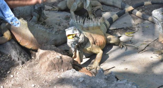 Comentó que antes de atender su tienda, era productor de caña y ahora que es pensionado encontró en alimentar a las iguanas una actividad diaria, “estamos buscando conservarlas, hacerles su espacio”.