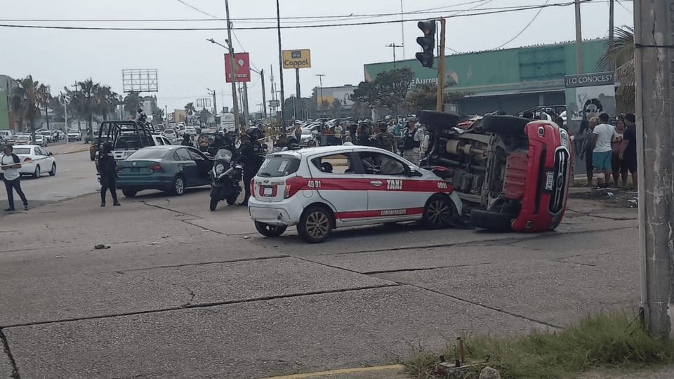 La persecución concluyó en el cruce de la avenida principal con Las palmas debido a que el taxi impactó contra una camioneta marca Ford, tipo Ranger, color rojo, con placas del estado de Veracruz, que circulaba de sur a norte.