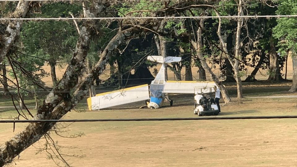 CÓRDOBA, VER.- Una avioneta cayó sobre el campo de golf del Club Campestre Cordobés, ubicado en la Ex Hacienda la Trinidad, en Córdoba.