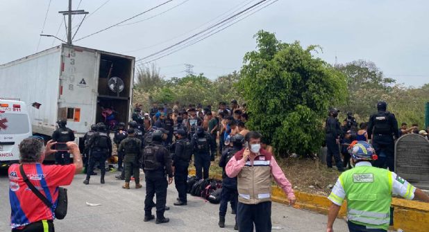 Córdoba, Ver.- Más de 150 personas, con situación irregular en el país, fueron intervenidas la tarde de este martes cuando viajaban a bordo de un tráiler con caja seca y doble fondo sobre la autopista Córdoba - Orizaba, a la altura del kilómetro 292.
