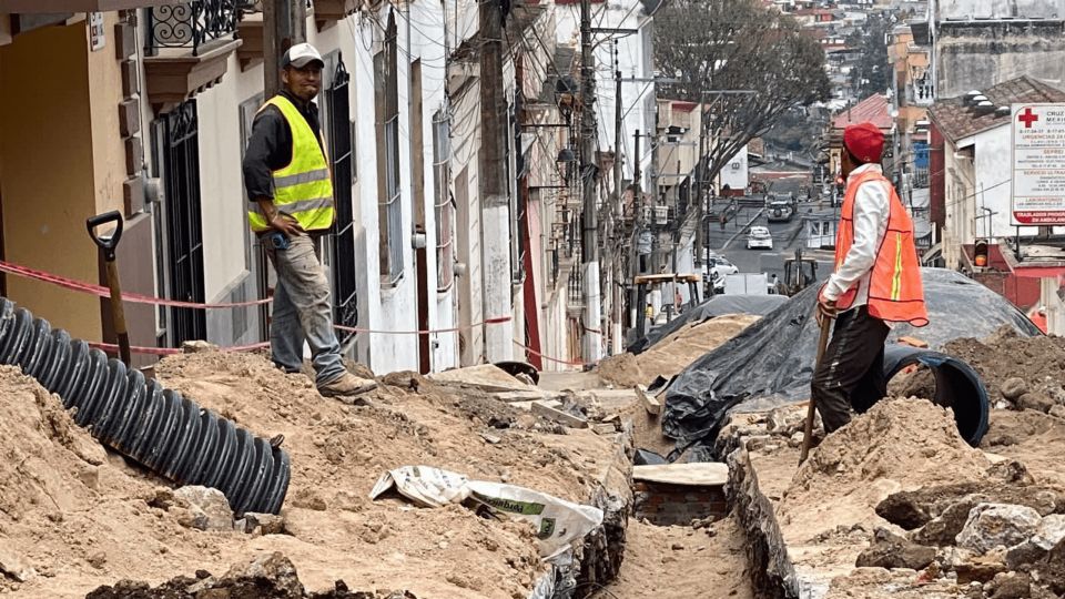 XALAPA, VER.- Trabajadores de la Comisión Municipal de Agua y Saneamiento (CMAS) destrozaron una tubería de agua durante los trabajos de rehabilitación de la calle Clavijero, en el centro de la ciudad.