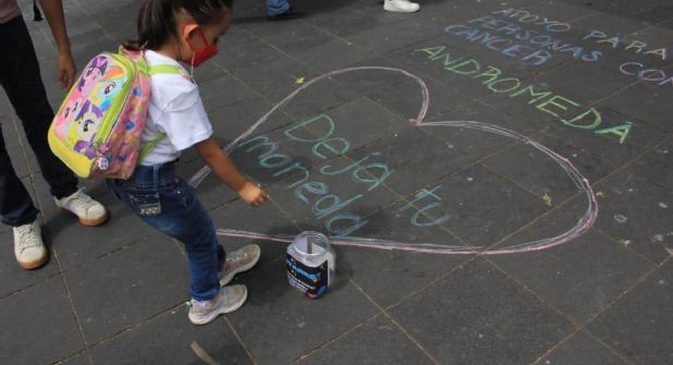 El grupo de jóvenes de Xalapa se instaló en el Parque Juárez en donde están realizando la colecta; requieren al menos 25 mil pesos, para adecuar las instalaciones del Centro Estatal de Cancerología (CECAN).