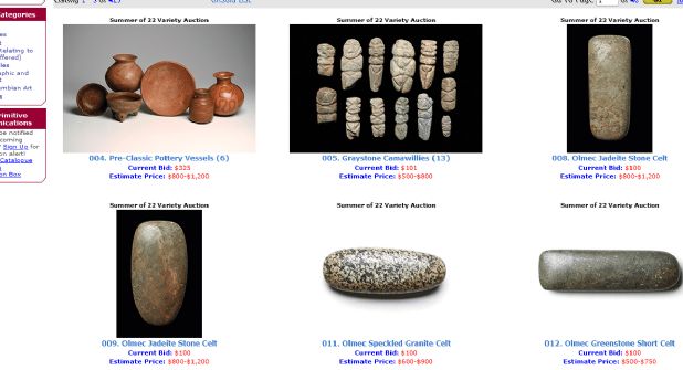 Las piezas originarias de Veracruz tienen precios entre los 600 y 900 dólares, pero algunas piezas como una denominada “Veracruz Old Deity Head Hacha”, está catalogada con un precio de 4 mil 800 a 7 mil 200 dólares.
