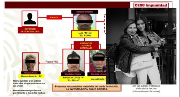 “Los autores materiales fueron Marcos de Jesús N., alias El Brujo y Luis Alberto N; el padre de Marcos de Jesús N., Marco Antonio N. habría facilitado la fuga de ambos sujetos una vez perpetrado el doble feminicidio”, añadió Ricardo Berdeja.