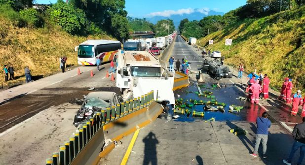 FORTÍN, VER.- Un accidente múltiple en el que se vieron involucrados tanto unidades particulares como del transporte público provocó el cierre de la circulación en ambos sentidos en la autopista Puebla-Córdoba.
