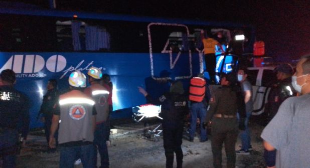 El autobús perteneciente a la empresa Autobuses De Oriente (ADO) iba con dirección a Ciudad del Carmen, en el estado de Campeche, cuando impactó de frente contra un tractocamión.