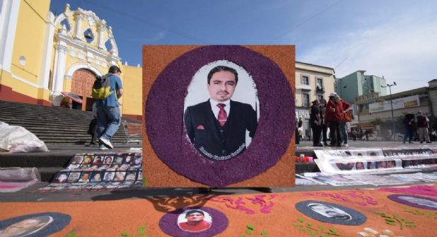 XALAPA, VER.- El rostro del abogado Ernesto Cipriano González se vio este 30 de agosto en el tapete de aserrín que hicieron familiares de personas desaparecidas para en el marco del Día Internacional de las Víctimas de Desaparición Forzada.