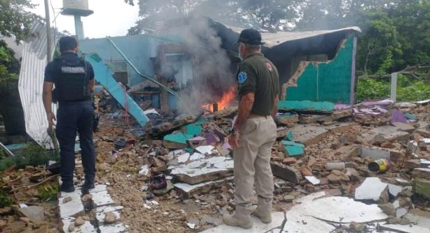 COSOLEACAQUE, VER. – Una vivienda, cuyo propietario se dedica a la venta de cohetes y pirotecnia, explotó y terminó reducida a escombros en el municipio de Cosoleacaque, al sur de Veracruz.