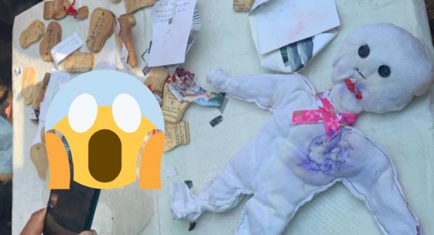 Entre los objetos que fueron hallados por los padres se encuentran un muñeco vudú color blanco, placas de madera y hojas blancas que presuntamente contienen el nombre de miembros de la comunidad escolar.