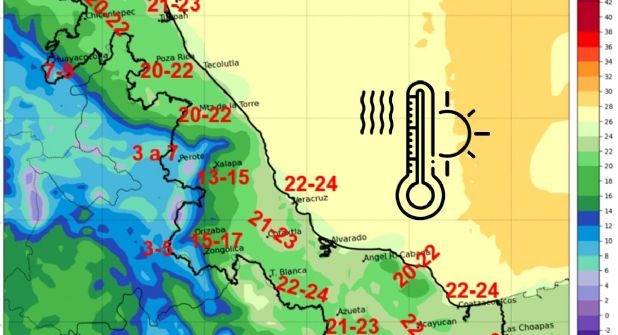 De la misma forma, en la región sur las temperaturas oscilarán entre los 21 y 32 grados, con cielos nublados por la mañana y lloviznas por la tarde-noche, principalmente en Los Tuxtlas, Cosamaloapan, Coatzacoalcos y Minatitlán.