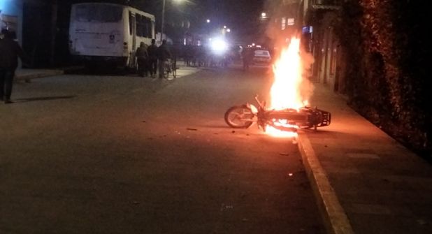 Posteriormente se comenzaron a escuchar disparos en diferentes zonas del municipio, mientras pobladores reportaban que sujetos desconocidos estaban atacando la comandancia municipal, ubicada en los bajos del palacio, además de que se llevaron y prendieron fuego a una motopatrulla. Al municipio arribaron varias patrullas de la Policía Estatal para intentar dar con los generadores de esta violencia.